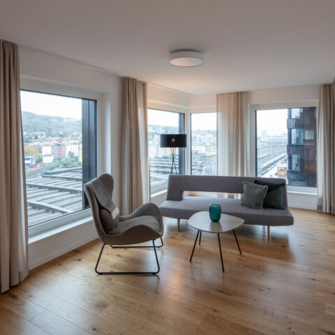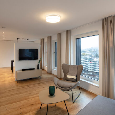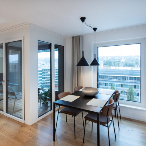 Die drei 80 Meter hohen Türme, die von der DT Planung Betreut und im Bereich der Gebäudeautomation realisiert wurden, umfassen rund 300 hochwertige Wohnungen und Business-Apartments mit Smarthome-Komfort. Die dreimal 21 Stockwerke erheben sich auf einem durchgängigen fünfstöckigen Sockel. In diesem Sockelriegel sind die meisten öffentlichen Funktionen des Gebäudeensembles untergebracht